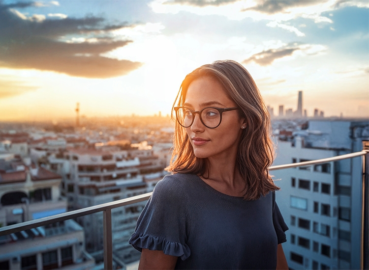 Vores farveskiftende brilleglas giver optimal visuel komfort og tilpasser sig automatisk til alle lysforhold og giver derved et afslappet og skarpt syn i enhver situation.